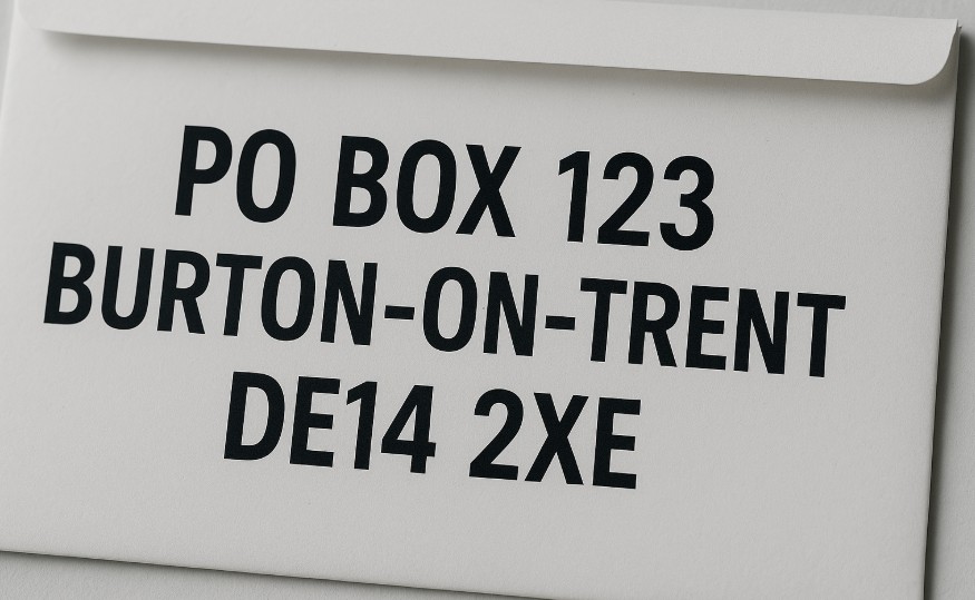 PO Box 123 Burton on Trent DE14 2XE